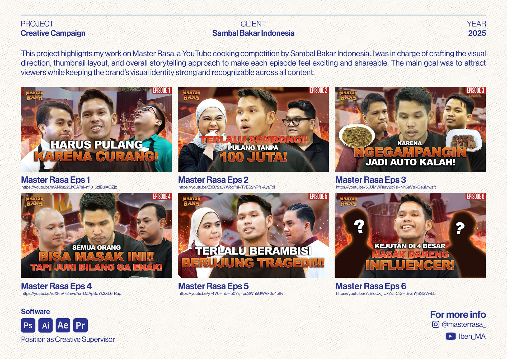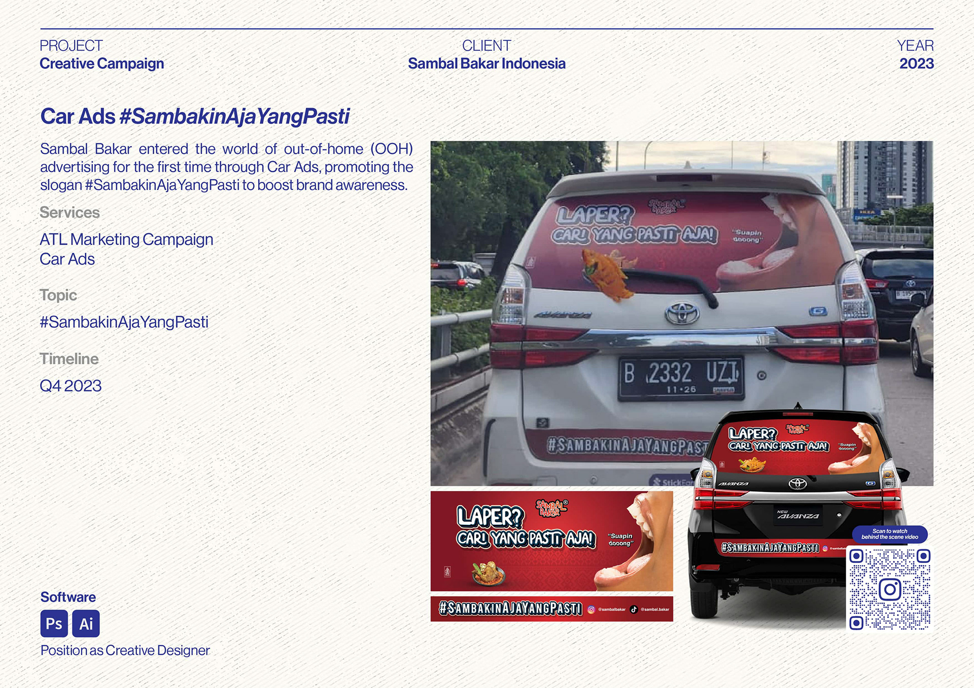 This commercial squeeze frame was created for Sambal Bakar Indonesia’s collaboration with EMTEK Group, aired during the Premier League broadcast on Vidio.com. The main idea was to associate Sambak’s energetic and bold identity with the excitement of football fandom, blending national culinary pride with one of the world’s most-watched sporting events.