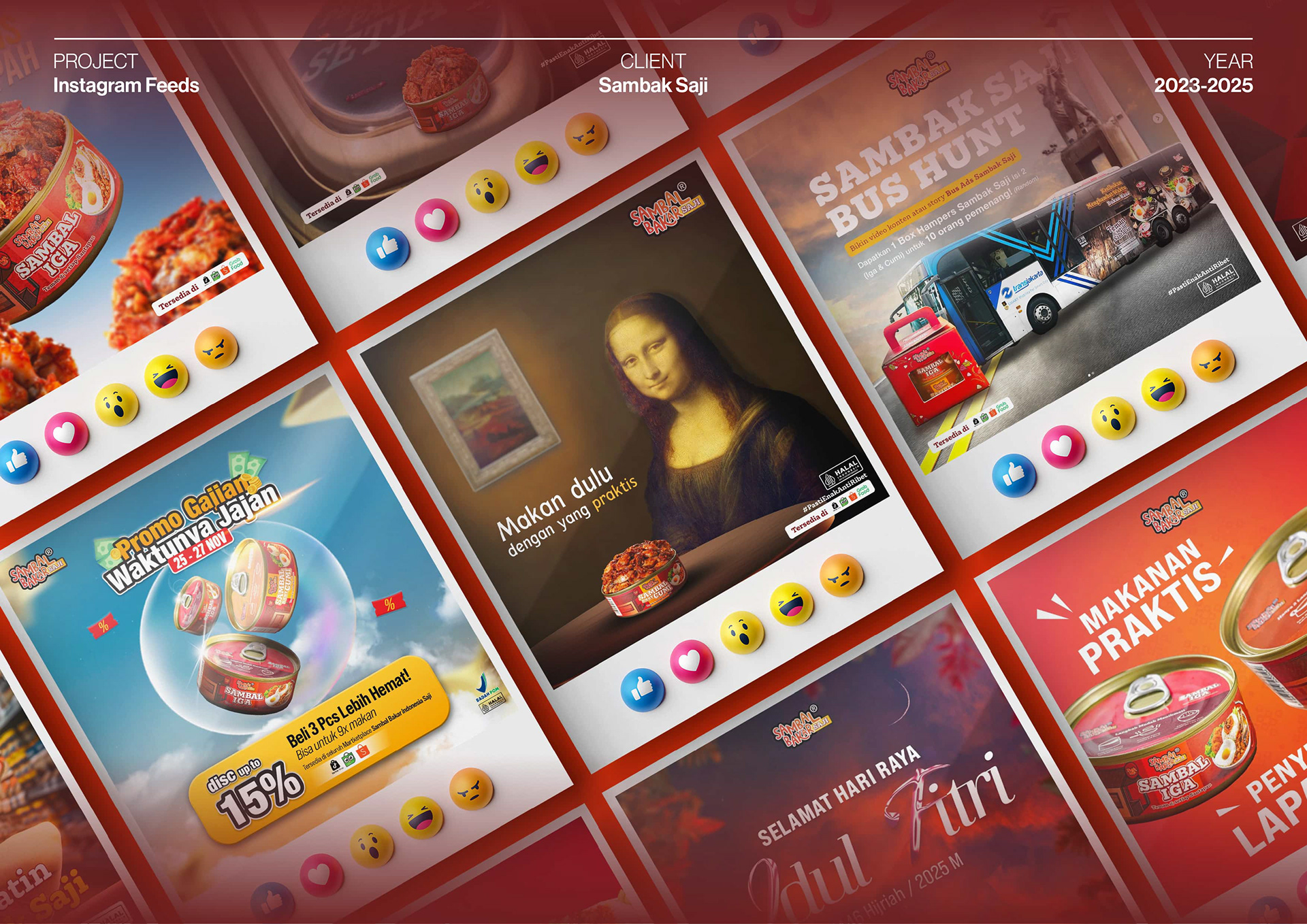 The copywriting “Mau Makan Apa Hari Ini?” serves as a direct engagement hook, inviting users to explore Sambak’s affordable combo meal a simple yet effective conversion tactic for Meta platforms. The layout was designed with pixel-inspired transitions and type treatments, balancing between retro aesthetics and modern food photography.