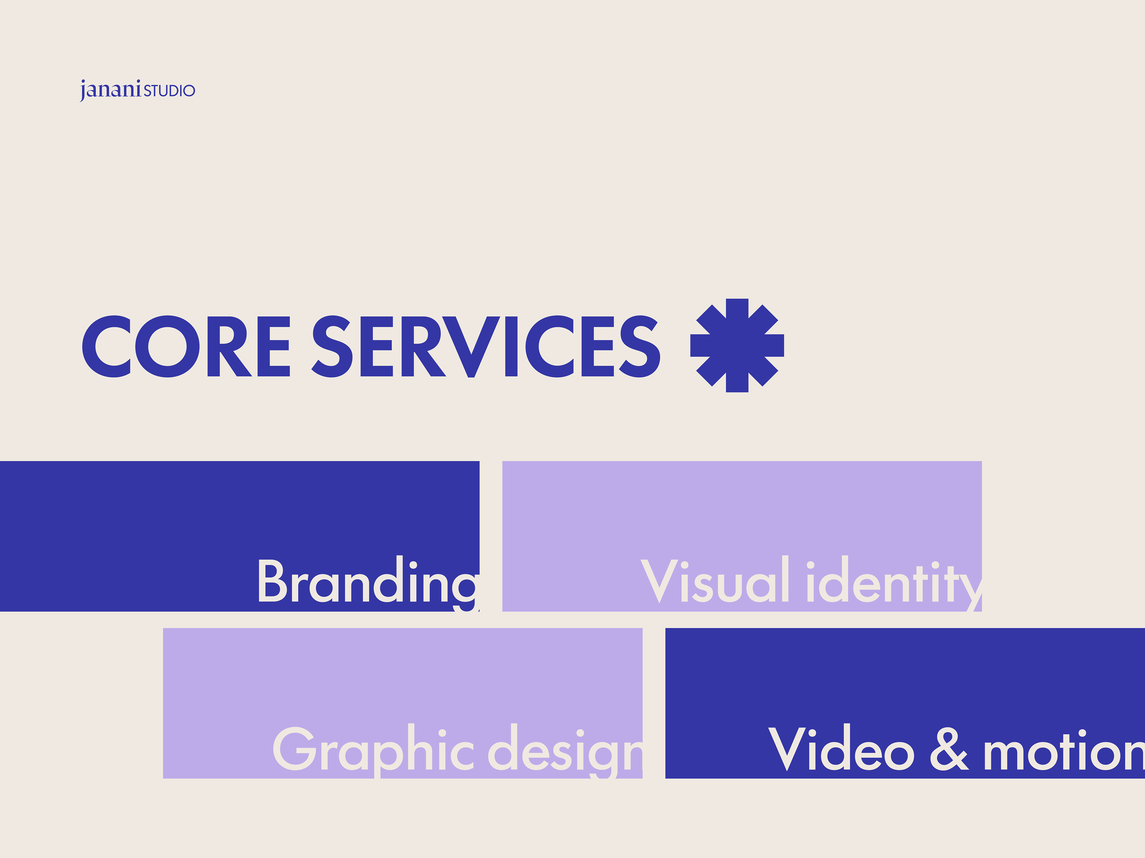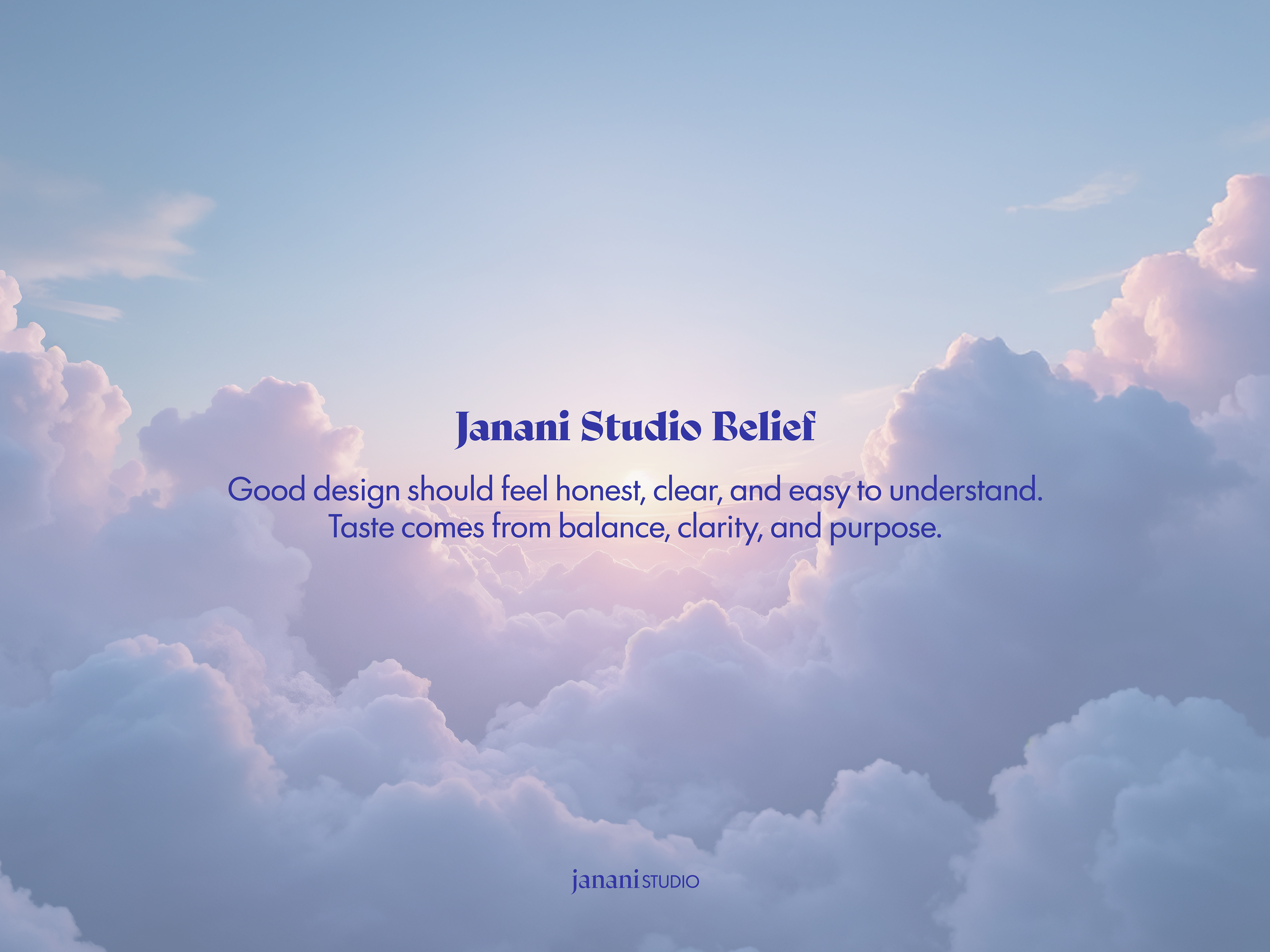 Janani Studio is a design firm focused on clean, intentional, and modern design. This project showcases the visual direction, identity style, and overall tone of the studio. The work includes branding, visual identity, packaging, marketing materials, and video/motion pieces. The goal is simple: create visuals that are clear, tasteful, and easy for audiences to understand. Color direction is inspired by calm blue, soft purple, and warm cream tones, combined with clean layouts and minimal shapes to keep the brand modern and refined. If you’re looking for a design partner that values clarity, detail, and visual craft, Janani Studio is here to help.